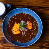 Rellenas de pollo deshebrado, salseadas con mole especial, crema, queso y cebolla.